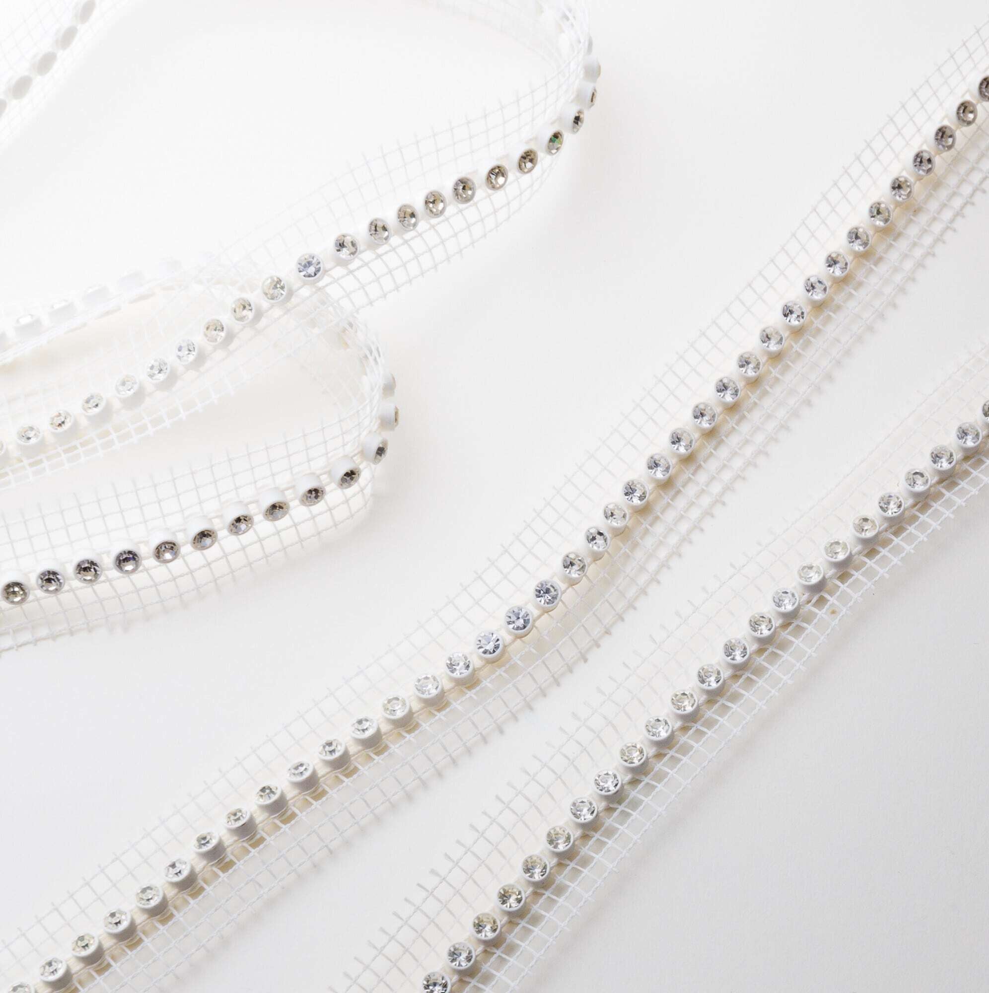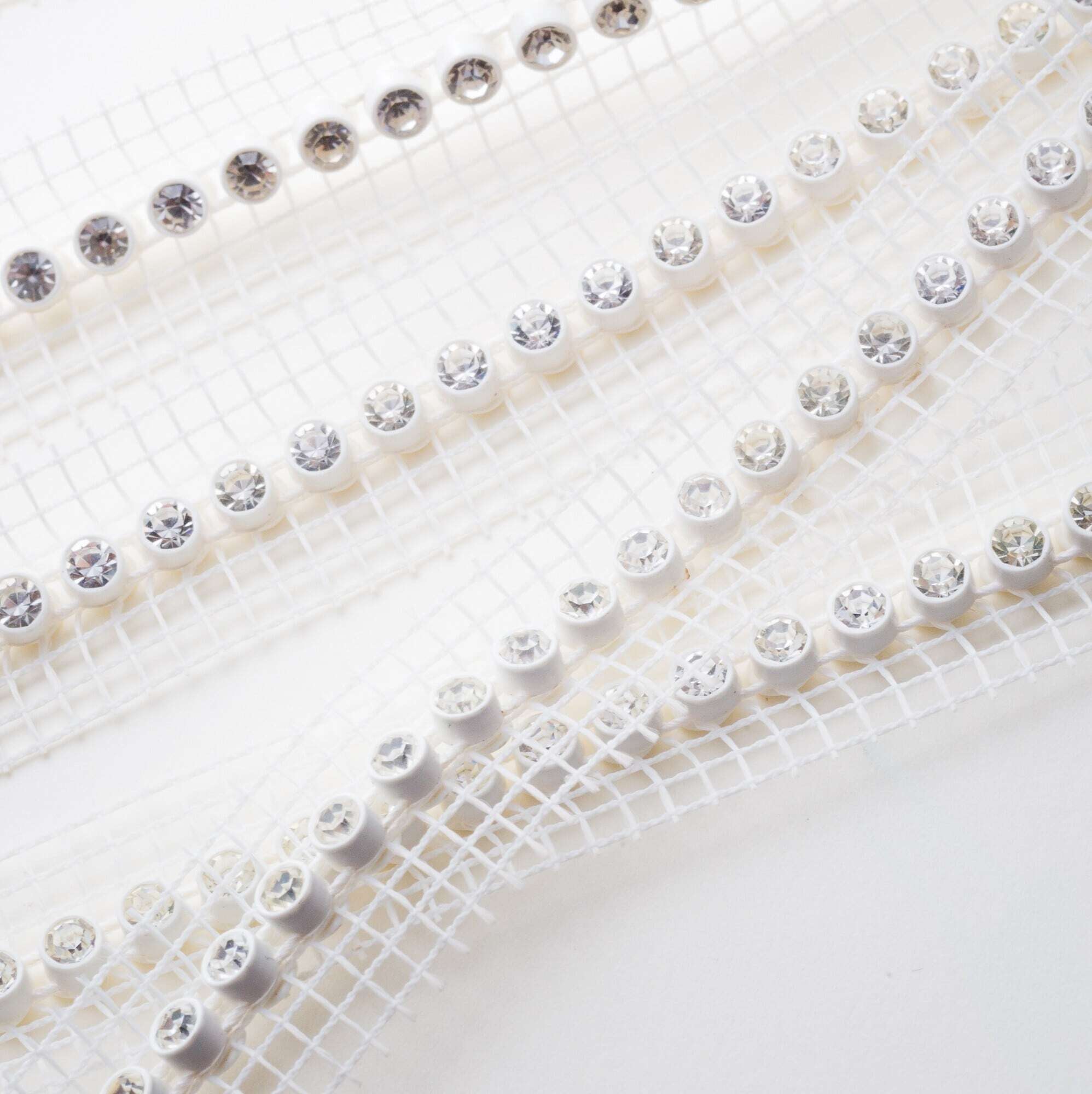 チュール生地にクリスタルガラスが縫い付けらています。