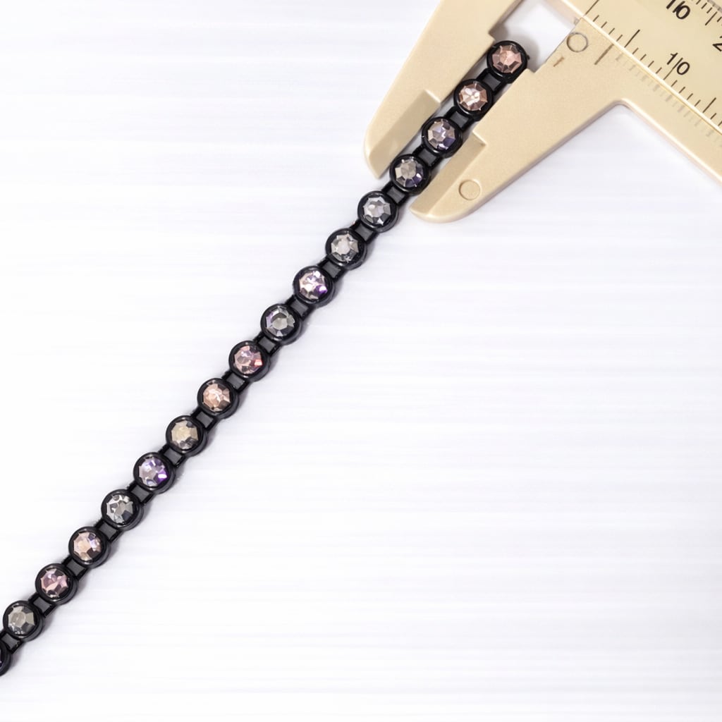 スワロフスキー認定正規販売業者の大伍貿易社から仕入れたオーストリア製オーロラカラーのクリスタルガラスと黒いパーツを使用した巾4mmのブレードです。