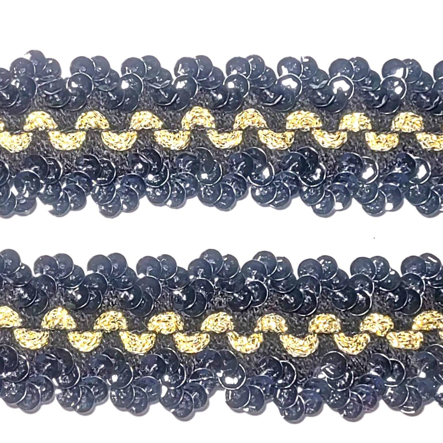 フランス製ブラックスパンコール&山道テープブレード 伸縮〈黒×金〉巾:3cm【モード系】【クラシック・レトロ系】【ストリート系】